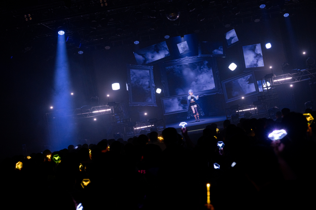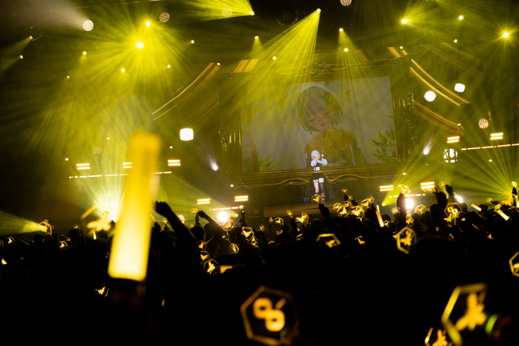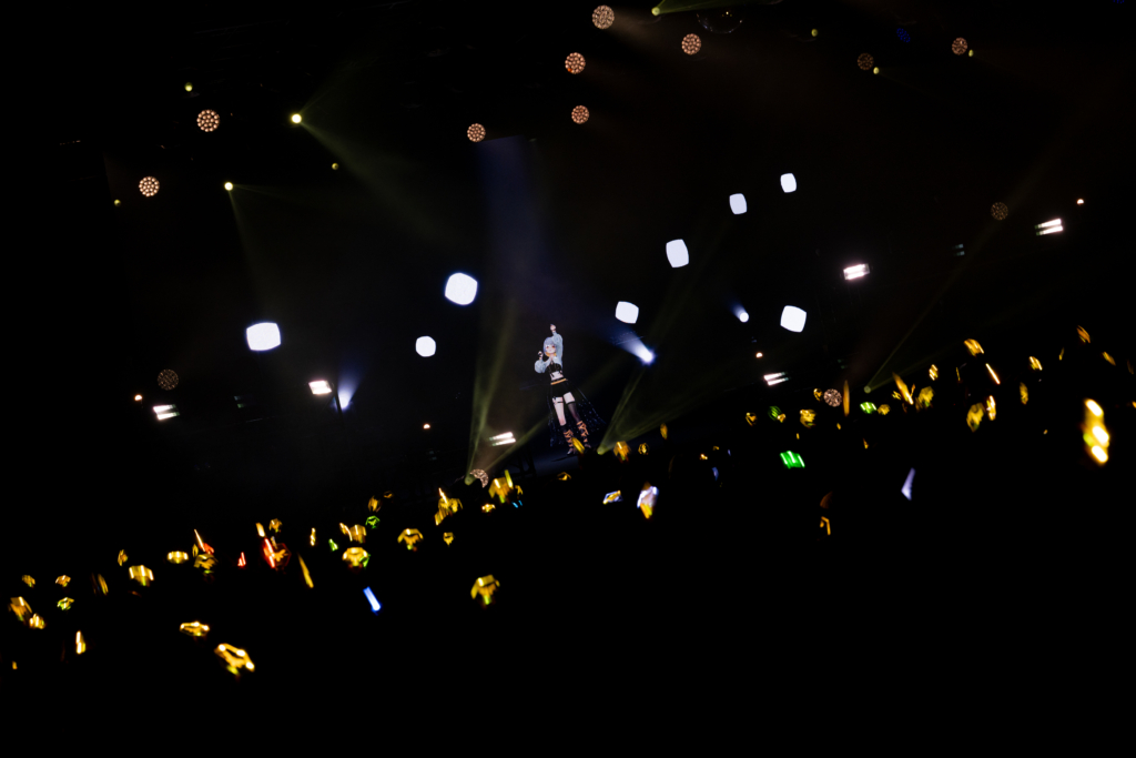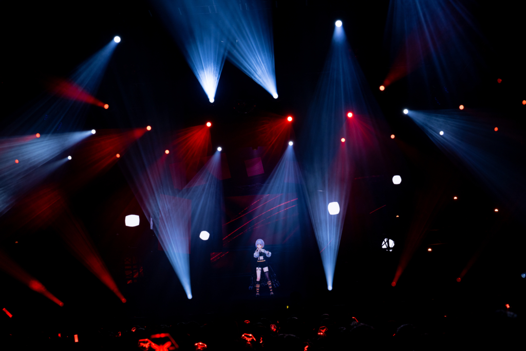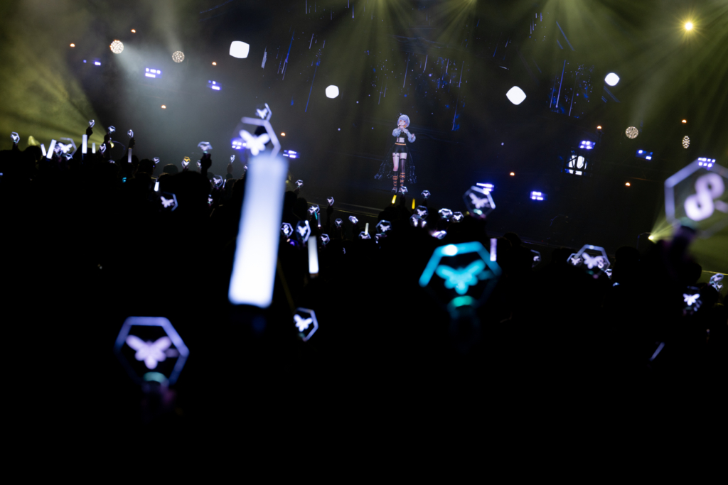最新アルバム『Revealia』が2月にリリースされてから初の公演ということもあり、昨年12月のカルッツかわさき公演からの変化も印象深い。まだ未公開だった楽曲も一部サプライズ披露するなど最新アルバムに向けた序章的な雰囲気も感じられたカルッツかわさき公演に対して、今回の台北公演は観客もアルバムの全体像を理解したうえでのステージ。自分のことを包み隠さず作品に詰め込むことで、バーチャルシンガーとしてまたひとつ階段を上っていくような雰囲気だった『Revealia』の魅力ともリンクするように、楽曲ごとの声や表情の変化によって、繊細ながらも非常に豊かな感情のグラデーションが表現されていく。セットリスト自体も前回とはまた異なる楽曲が多数用意されており、2つの公演を体験することで、今のHACHIや最新アルバムの魅力がより伝わってくるような雰囲気もある。