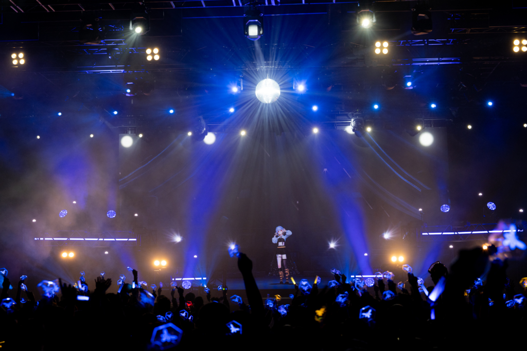ライブ後半はお馴染みの楽曲を中心にした展開へ。アコースティックギターを加えた洒脱なトラックにやわらかな歌を乗せた「√64」を皮切りに、どこか切なさを感じるEDMポップ「Level off」、ゆらゆら舞い上がる蛍の光を背に歌った「八月の蛍」、ステージいっぱいに灯篭をちりばめた「夏灯篭」、エモーショナルな楽曲をしっとり歌い上げた「Rainy proof」など人気曲を次々に披露。「ここからは落ち着いたセトリをお届けしたいと思います。ぜひ浸っていってください」と伝え、「Empty Town」「Deep Sleep Sheep」「ivy」など今度は新曲群も交えながら観客をさらに自分の世界に引き込んでいく。続く「fragment」での今にも泣き崩れそうなほどエモーショナルなボーカルも印象的だった。